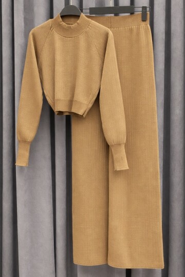 PARMAK GEÇİRMELİ TRİKO TAKIM -ACI KAHVE