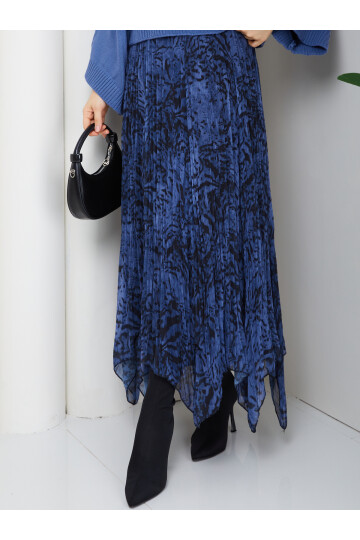 ASİMETRİK ŞİFON ETEK - MAVİ